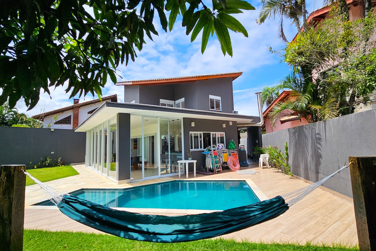 Luksuriøst møblert hus med moderne arkitektur Lukket leilighet med vakter døgnet rundt Fire suiter med queen-seng og ekstra seng, klimaanlegg. 2 bad Stor stue med smart-TV Grill Basseng med foss Balkongterrasse med utsikt over bassenget og den innfødte atlantiske skogen Bordtennisbord Ubegrenset parkering. Solen slår hele dagen ved bassenget/terrassen. Trygt sted, som forener naturen og stranden, perfekt for å ta imot en hel familie eller vennegjeng. Mange fritidsalternativer i regionen.