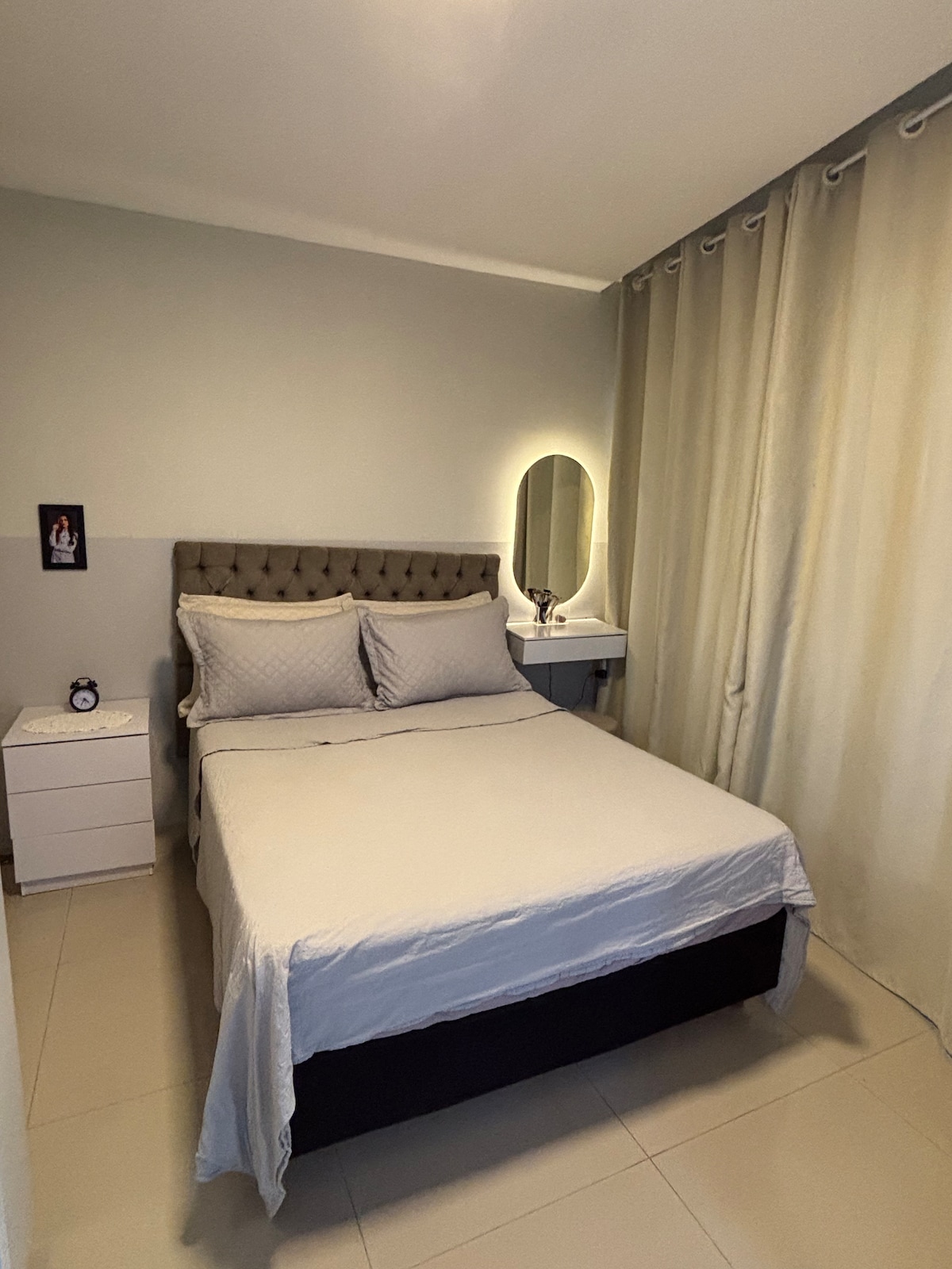 Komplett leilighet i sentrum, i nærheten av markeder, kino, restauranter og butikker. Mindre enn fem minutter fra sjøen! 😃 Leiligheten har et soverom, stue, bad og kjøkken/oppbevaringsplass, fullt møblert og klar til bruk. I stuen har leiligheten en dobbeltseng i sovesofa. Sjøutsikt fra både leiligheten og terrassen, som har svømmebasseng, treningsstudio og fritidsområde. Inkluderer også TV med Netflix og andre strømmetjenester (ikke inkludert), grill og garasje.