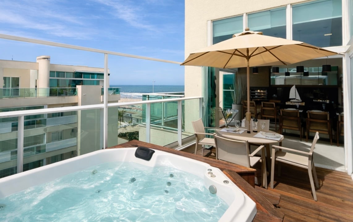 Toppleilighet i to plan ved stranden i leilighetskomplekset Ilhas do Atlântico Club, med privat boblebad, gourmetområde med grill og sideutsikt over havet. Det er to soverom, to bad, klimaanlegg i alle rom, et fullt utstyrt kjøkken, Wi-Fi og to overbygde parkeringsplasser. Leiligheten tilbyr et svømmebasseng, idrettsbaner, en lekeplass og tilgang til stranden. Kjæledyr er tillatt, og det er plass til opptil åtte gjester, med mer komfort for fire personer. Perfekt for familier, par og grupper som er ute etter hvile, fritid og flott beliggenhet.