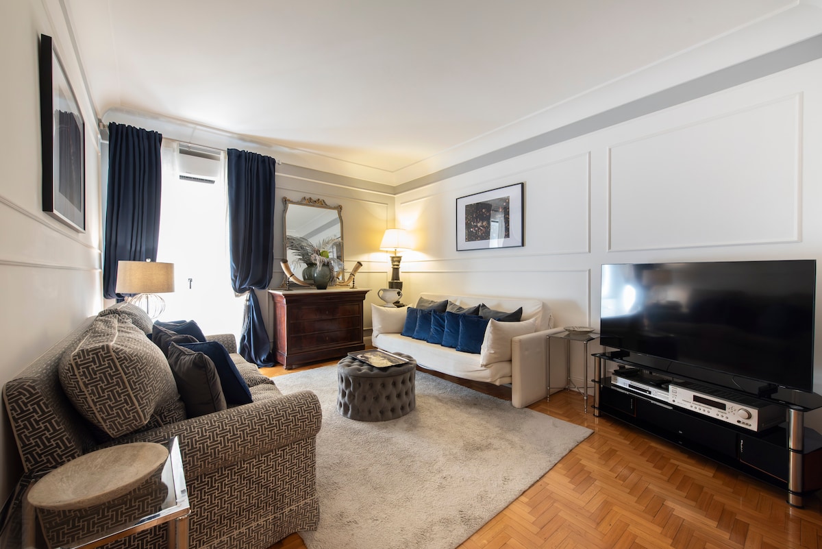 Denne leiligheten med ett soverom ligger i en historisk bygning som vender mot et av de mest ikoniske torgene i verden. Den ligger i første etasje og har moderne fasiliteter og en misunnelsesverdig terrasse, perfekt for middager utendørs. Leiligheten er ideell for par eller små familier, og har et førsteklasses klimaanlegg i alle rom, trådløst lydsystem i flere rom, dampbad og badekar. Gå ut av inngangsdøren for å kaste mynten din og fordype deg i den livlige atmosfæren i sentrum.