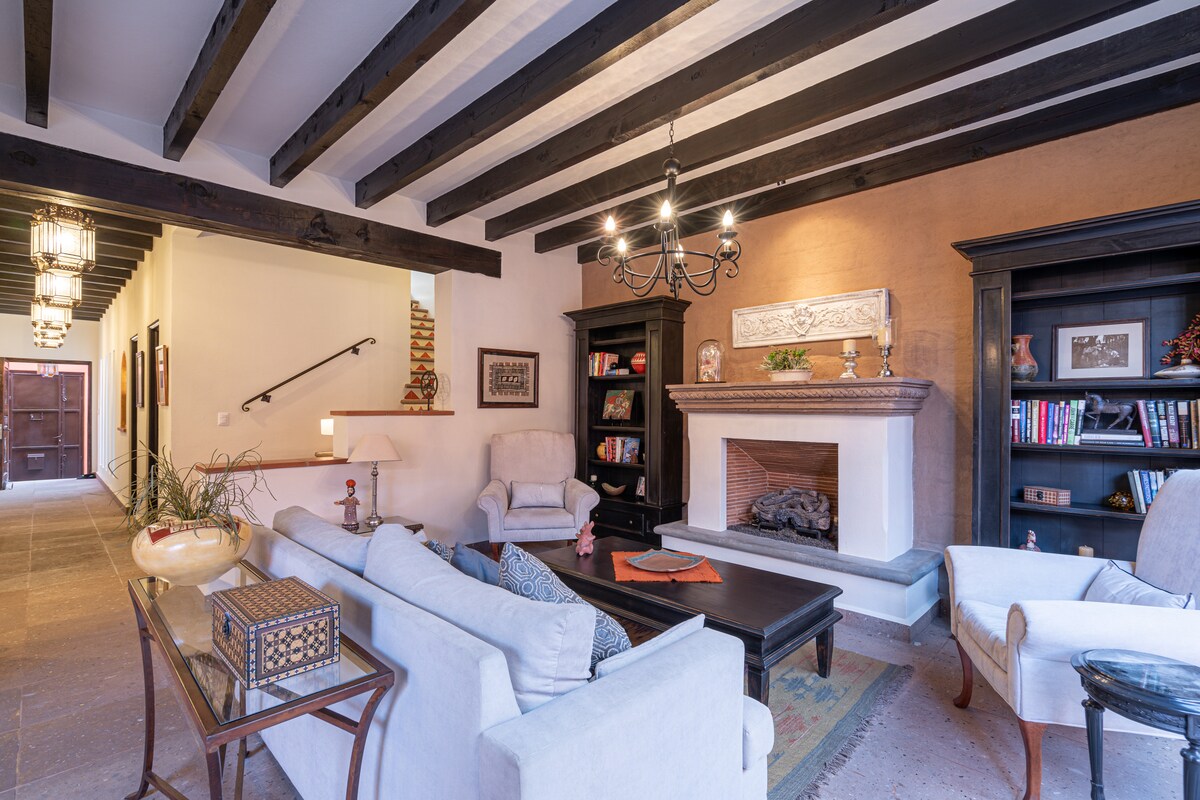 Dette nydelige 300 år gamle koloniale meksikanske hjemmet har god beliggenhet i det historiske sentrum i San Miguel de Allende, bare to kvartaler fra «Jardin» eller hovedtorget». Det inkluderer et svømmebasseng og daglig hushjelp/kokketjeneste. Selv om det er et enetasjes hjem, er det noen trinn opp fra bassengterrassen og soverommene til utendørsstuen, og noen flere opp til stuen/spiseområdet og biblioteket.