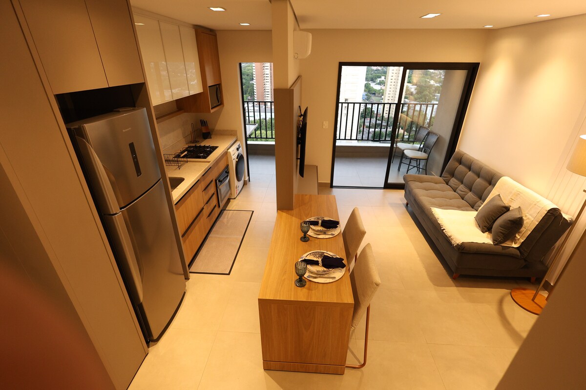 Helt ny leilighet, designet og dekorert med stor omsorg av meg, fra valg av møbler til maleriet som dekorerer stuen. Et sted for hygge og hvile, for par, familier eller enslige reisende. Ligger i sentrum av Foz, ved siden av et marked og et apotek, med kafeer, restauranter, treningssentre og barer ett kvartal unna. Leiligheten min har alle nødvendige fasiliteter for å gjøre oppholdet ditt minneverdig i Foz do Iguaçu!