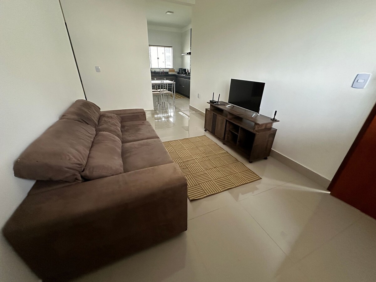 🌿 Ditt moderne fristed i Patos de Minas Moderne leilighet, ekstremt ren og fullt utstyrt, kun 800 meter fra sentrum. Perfekt for deg som ønsker komfort og praktisk tilrettelegging, enten det er på forretnings- eller fritidsreiser. Plass til opptil fire gjester: ✔ garasje ✔ 500 MB trådløst nettverk ✔ Aircondition på hovedsoverommet ✔ Smart TV-er komplett ✔ kjøkken ✔ Vaskemaskin. ✔ Komplett sett med sengetøy og håndklær 100 % innsjekking uten vert med elektronisk lås. Hvitt sengetøy, håndklær og desinfiserte tepper.