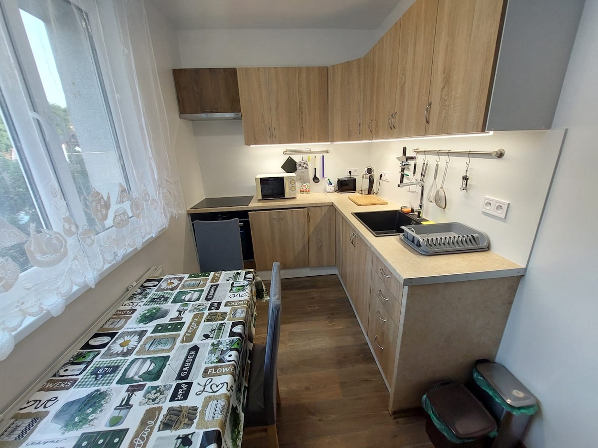 Lys, moderne leilighet med førsteklasses beliggenhet i Prešov. Nyt naturlig lys, en privat balkong, et dedikert arbeidsområde med raskt trådløst nettverk og et fullt utstyrt kjøkken. Perfekt for par, familier eller forretningsreisende. Inkluderer gratis parkering og er kjæledyrvennlig. Innsjekking uten vert hvis du trenger det.