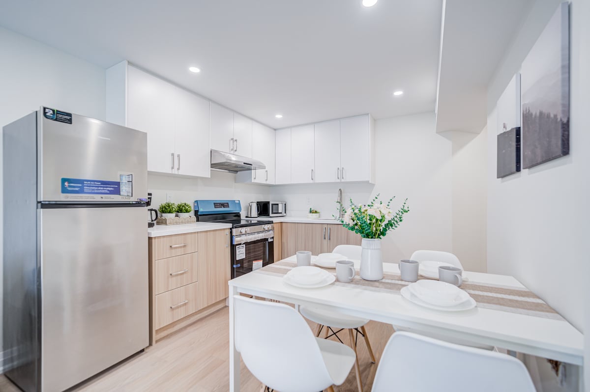 Enjoy a stylish and peaceful stay at this centrally located one-bedroom lower-level unit, perfect for both leisure and business travelers. With your private entrance, parking, and all the essentials, it’s your ideal home away from home. Features include a full kitchen, bathroom, internet, smart TV, one Queen and one sofa bed, and a functional workspace. Steps from FreshCo, Walmart, restaurants, and services. Minutes to Vaughan Mills, Canada’s Wonderland, Cortellucci Hospital and transit.