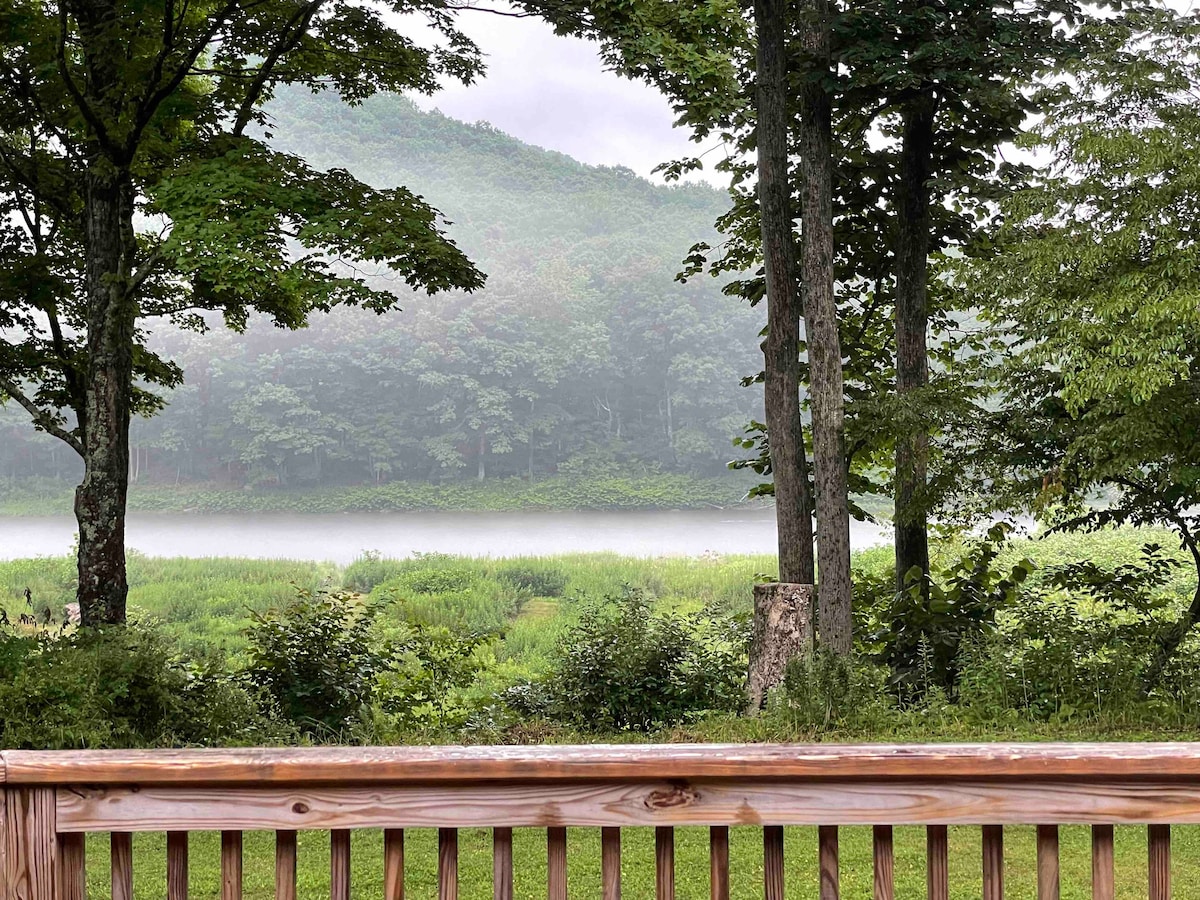 Foot steps from the crystal clear Delaware River perfect for fishing, swimming, kayaking, hiking, golfing canoeing or just sitting with your feet in the water enjoying the view! This 2000sq foot custom log home is located on a private road directly on the Delaware River in the heart of the Catskill Mountains. 2 1/2hours from New York City. The location is the best the Catskills has to offer! Nothing in the area compares to the location or the interior design. Truly 5 star accommodations!