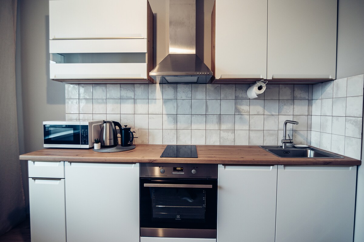 Koselig og lys leilighet i hjertet av Rezekne. Stille ettersom vinduene vender mot gårdsplassen. Alt du trenger ligger innenfor et par minutters gange – Ear Body Kebabs, Iggi Bar and Chops, Heaburger, butikker, apotek og kollektivtransport. Konserthuset GORE – ti minutters gangavstand. Leiligheten passer perfekt for to personer, men har også en komfortabel sofa som passer for en tredje person hvis det er nødvendig. Beliggende i femte etasje – forvent å måtte gå i trapper. Fester er ikke tillatt. Ha et nydelig opphold her! ☀️