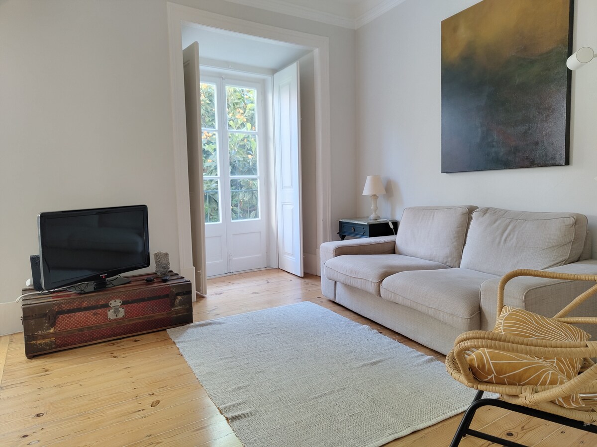 OPPSUMMERT: Vår nyoppussede leilighet ligger bortgjemt i det hippe Principe Real-distriktet i en rolig blindgate. Vi har gjort vårt beste for å respektere de utskårne takene og andre gamle funksjoner, og vi føler at det er en urban oase, som får naturlig lys gjennom de sørvendte vinduene med balkong mot en hage og klimaanlegg (for oppvarming og kjøling).