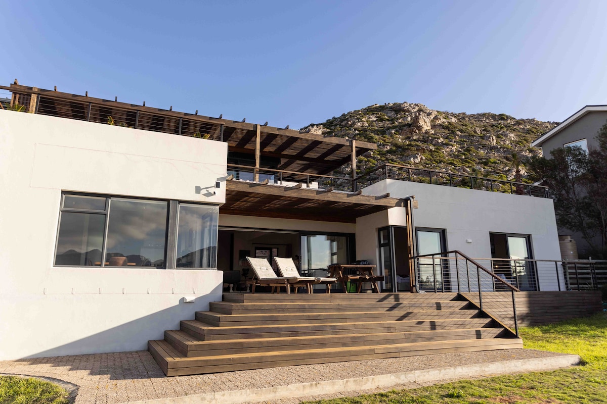 Slapp av mens du nyter den spektakulære 270-graders utsikten over havet og fjellet fra denne luksuriøse studioleiligheten i Pringle Bay. Bare 100 meter fra den steinete kystlinjen vil du ikke bare bli imponert over utsikten, men du vil også høre og føle bølgene som slår mot klippene. * Ubegrenset trådløst nettverk (fungerer under strømbrudd). * Kingsize-seng. * flatskjerm-TV med Netflix, AppleTV+ og YouTube * fullt utstyrt kjøkken * peis * Oppvarmet håndklestang. * håndholdt bidé * god kaffe * Låsbar safe. * hårføner