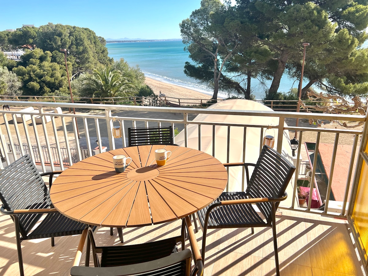 Apartamento para 6 personas a 5 min de Portaventura en coche y a 400m de la playa andando, dispone de dos habitaciones, una matrimonial con armario empotrado, y otra tipo camarote con un sofá cama, salón-comedor amplio con otro sofa cama, smart tv, WIFI, AIRE ACONDICIONADO, lavadora, plancha , cocina y baño completos, balcón con sofá chill-out, espacioso y soleado con bonitas vistas.Dos piscinas, parque infantil, jardines, mini golf, ping-pong, pista de basquet, futbol y frontón.