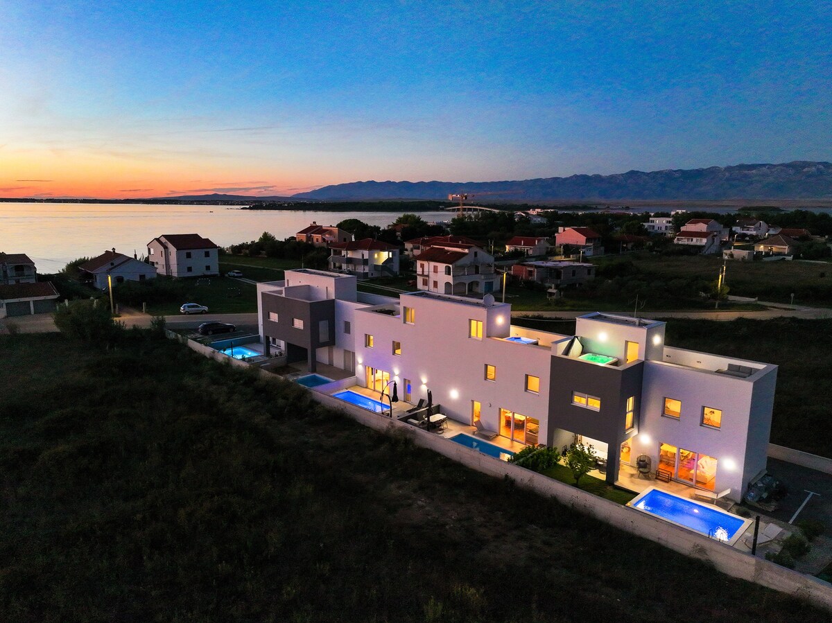 Aqua Blue is a luxurious seafront property in Privlaka, near Zadar, offering stunning views of the Adriatic Sea. The highlight of this exclusive retreat is its rooftop terrace, equipped with a jacuzzi and grill, perfect for relaxing or entertaining under the stars. With modern, elegant interiors and a prime coastal location, Aqua Blue provides an unforgettable escape in the heart of Croatia's beautiful Dalmatian coast.