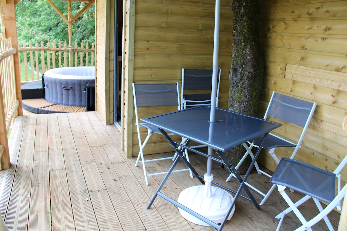 Uvanlig opphold i Sarlat-regionen i Périgord Noir. Vi vil ha gleden av å ønske deg velkommen i en hytte som ble bygget i en vakker naturlig hjørne av eiendommen, blant eik, steineik og hagtorn, isolert og alene midt i 25 000 m2 eng. prisen inkluderer: sengetøy, puter og dyner (sengene er redet ved ankomst) håndklær, hansker, badekåper og tøfler. frokost, servert i en kurv som heises opp. vann, strøm, oppvarming