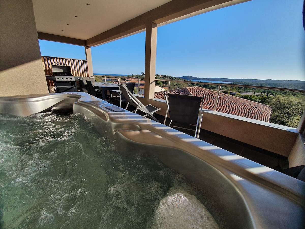 2-T3 jacuzzi, havutsikt, spa, svømmebasseng 29°, hammam