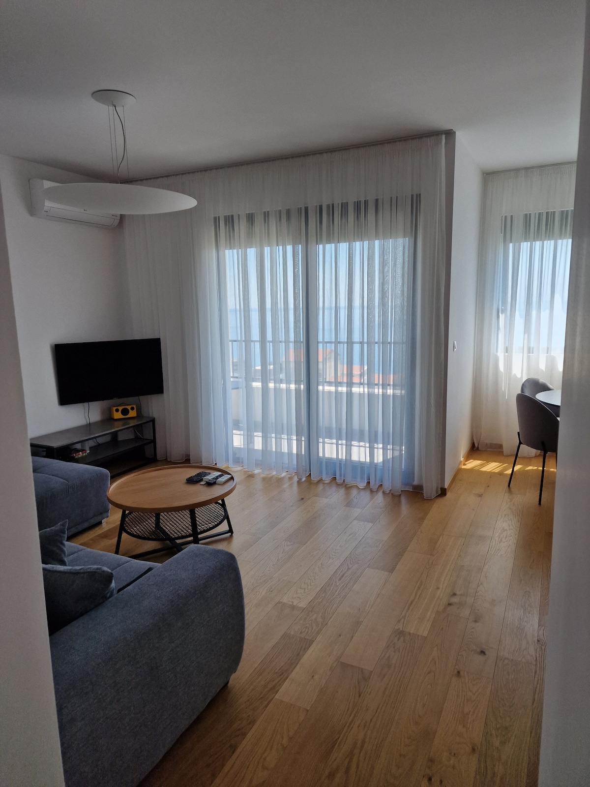 Kos deg på en stilig sofa i denne lyse leiligheten med smart elegans, sildebeinmønstret tregulv, trendy møbler og strålende blå detaljer. Dra til balkongen for å nyte fascinerende utsikt over havet og fjellet fra et sjarmerende bistrobord. Stor og komfortabel stue med smart-TV, raskt internett og et spisebord med stoler samt en balkong med sitteplass med utsikt over Kotor-bukten. Fullt utstyrt kjøkken (kjøleskap, oppvaskmaskin, multifunksjonell mikrobølgeovn, varmeplate, stekeovn, brødrister, juicer, vannkoker, kaffemaskin) tilgjengelig for deg, samt alle de andre redskapene du trenger. Det første soverommet har en kingsize-seng, og det andre soverommet har to separate senger som kan settes sammen. Et bad med dusj, hårføner og vaskemaskin. Leiligheten er utstyrt med klimaanlegg for både kjøling og oppvarming. Den ligger i tredje etasje i boligbygningen uten heis. Det er parkering ett minutt unna på eierens eiendom eller rett foran leilighetsbygningen. Hvis du trenger noe som kan gjøre oppholdet ditt bedre, ikke nøl med å spørre, og jeg vil gjøre mitt beste for å imøtekomme deg. Det jeg liker best med å være vertskap, er å komme i kontakt med gjester som både jeg og familien min deler den samme lidenskapen – å reise og oppdage flotte steder og kulturer. Jeg ser frem til å ønske deg velkommen snart! Leiligheten ligger svært nær sentrum og gamlebyen, bare noen minutter unna til fots fra historiske steder, landemerker, museer og naturskjønne turstier. Restauranter ved vannet, sjarmerende kafeer og butikker ligger en kort spasertur unna. Nærmeste strand ligger bare 100 meter fra leiligheten. Med alt dette rundt deg, kan du kanskje bestemme deg for å nyte spektakulær havutsikt fra balkongen over et glass vin. 10–20 minutter med taxi fra flyplassen, 5 minutter med taxi til busstasjonen. Kollektivtransport 100 meter. Gamlebyen, til fots, på fem minutter. Tredje etasje i bygningen, ingen heis!