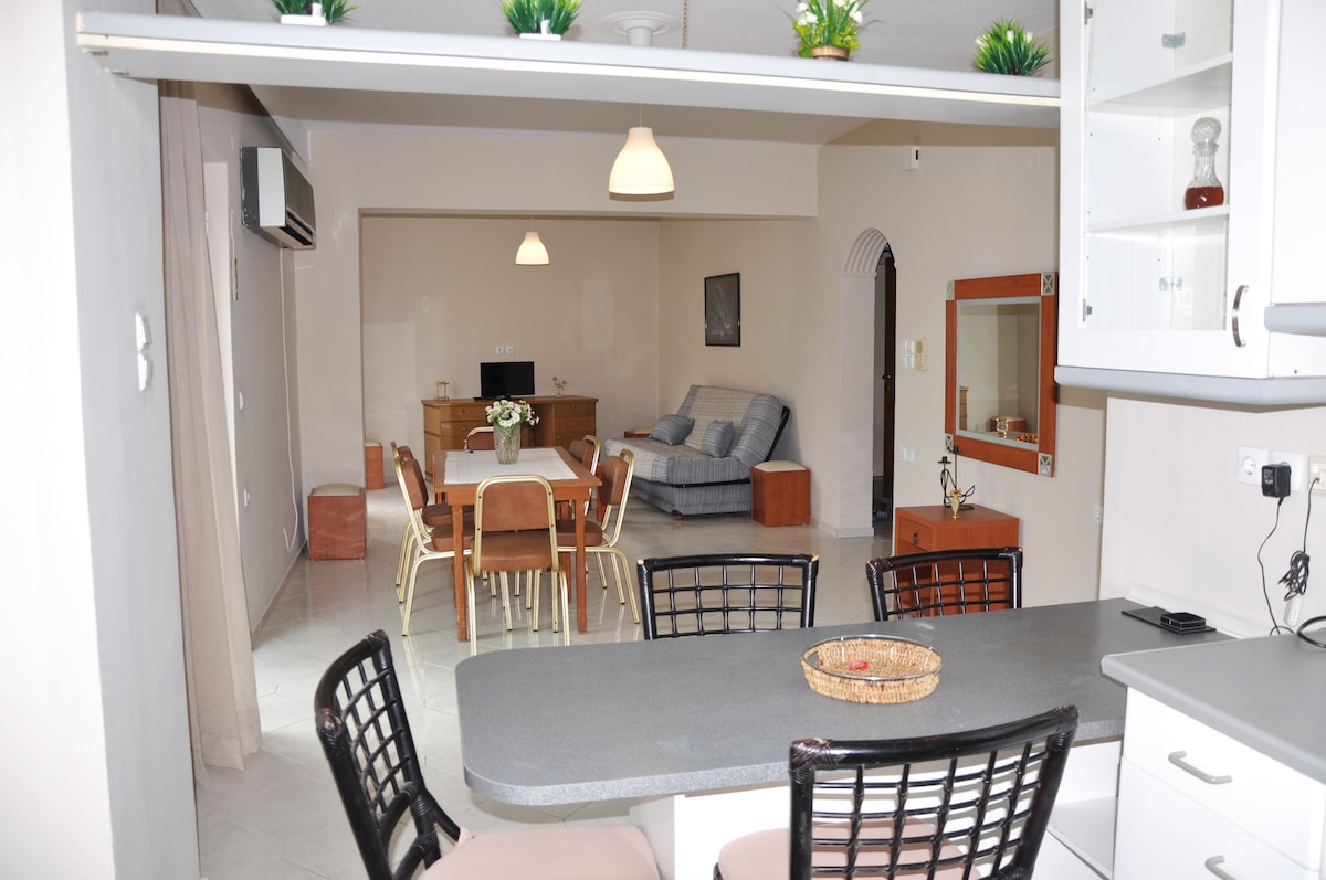 Nyt et avslappende opphold i vår halvveis frittstående maisonette, bare 50 meter fra fredelige Psalidi Beach. Nyt fantastiske solnedganger med utsikt over havet hjemmefra. Stedet tilbyr to koselige soverom og en hjemmekino/lekerom i kjelleren – perfekt for morsomme familiekvelder eller avslapping etter en dag på stranden. Ideelt for par, familier eller venner som søker en rolig ferie ved havet.