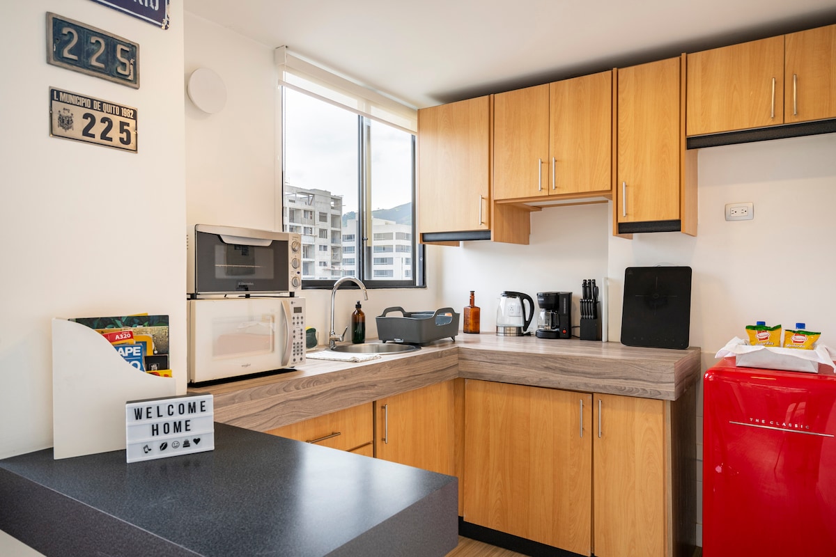 Cozy apartment remodeled in the colonial quarter of Quito, located on the third floor, a loft with a spectacular panoramic view of the Historic Center. It has two bedrooms, two bathrooms, a living room, a dining room, and a kitchen equipped with filtered water and essential implements to meet our guests' needs. The comfortable facilities provide good relaxation. We have Wifi 620Mbps a 1.05Gbps, a telephone line, a television with Netflix, and heaters for the shower and kitchen sinks.
