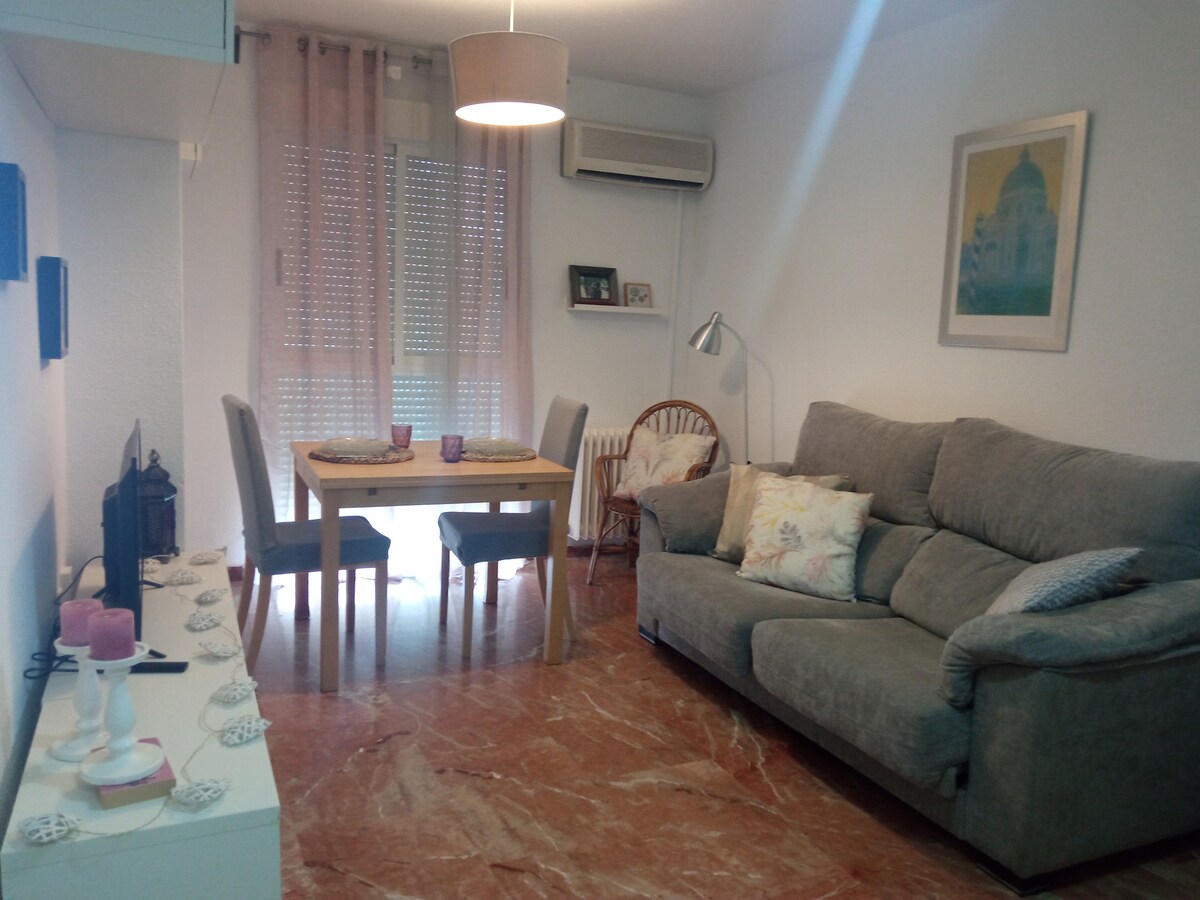 Vakker leilighet med industriell design, nylig renovert, 32 m², godt fordelt. Med mye lys og utsikt i et rolig område 15 minutter til fots fra sentrum, bussholdeplass 60 m unna, og privat parkeringsplass for bilen din. Koble av i dette unike og klimatiserte overnattingsstedet. Og hvis du trenger det, kan du få en Peugeot Rifter med alle tillegg for kun 45 € per dag, med henting og levering til boligen. Vi tilbyr også transport til Madrid, Córdoba, Granada og Málaga.