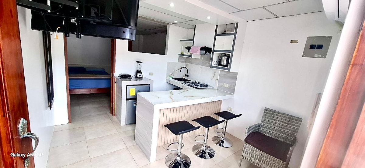 ✔️ Superhost verifisert oppholdet ditt vil være i de beste hender! Leilighet i Puerto Baquerizo Moreno, Ecuador 📍Supert beliggenhet 🏡 Rent, komfortabelt og trygt sted. 💬 Jeg er tilgjengelig for å hjelpe deg. 🔑 Bestill i dag og finn deg til rette i Ecuador! 👨👧👧 Ideelt for turister, ledere, par, familier eller vennegjenger. Leiligheten tilbyr: 🌐 Trådløst nettverk. 📺 TV 🍳 - fullt utstyrt kjøkken 🌬️ Klimaanlegg 🌸 Vaskemaskin 🌅 Privat balkong 🚪 to soverom 🛌 6 senger
