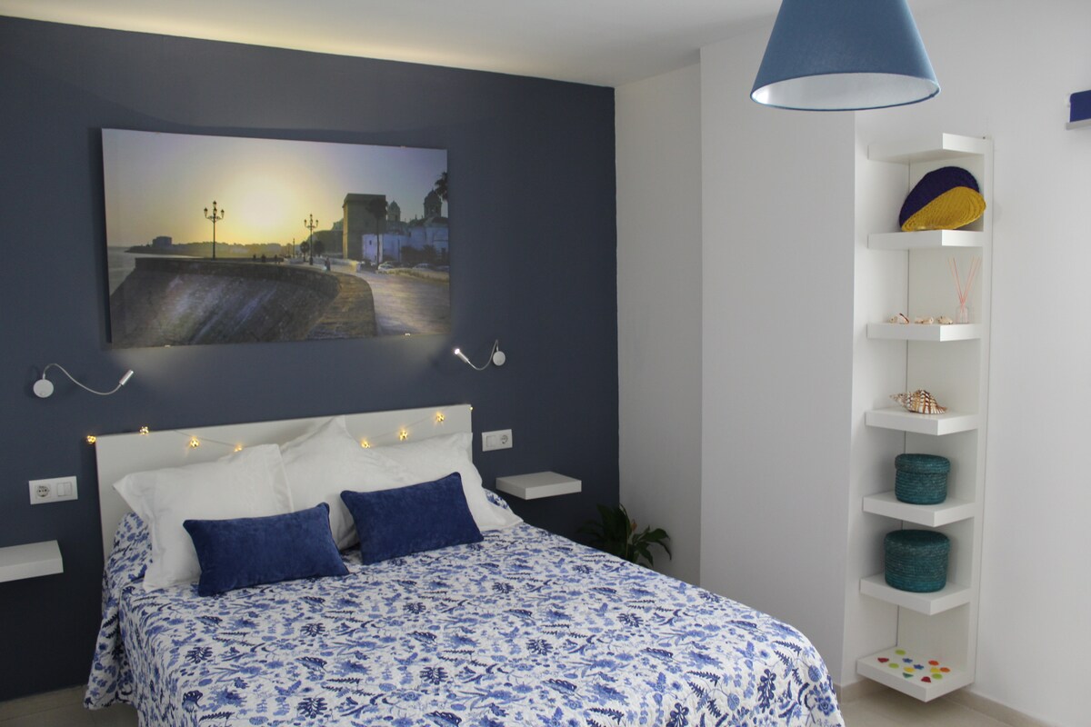Denne leiligheten i andre etasje ligger i et nyoppusset hus fra 1800-tallet, som ligger bare 3 minutter enten fra katedralen eller fra det sentrale markedet. Alt i det historiske sentrum av Cadiz ligger innenfor en gangavstand fra leiligheten. Bygningen ligger i et fotgjengerområde og er derfor stille og fredelig. Soverommene åpner til en uteplass i et kloster fra det 18. århundre og er enda mer rolige. Fra taket har du en fantastisk utsikt over det atlantiske havet.