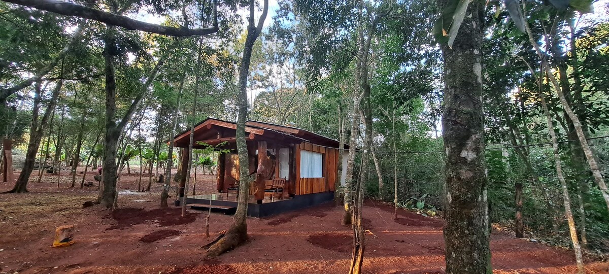 Rústica y sencilla cabaña de madera frente al lago Urugua-í, en un paraje rural a 30 km de las Cataratas del Iguazú. Posee lo indispensable para los aventureros que recorren y disfrutan de la selva paranaense. Cocina con equipamiento básico: fogón, heladera con freezer y utensilios. Aire acondicionado, un wifi bastante malo, agua caliente, kayak para pasear en el lago, y las más bellas puestas de sol en la puerta de tu alojamiento.