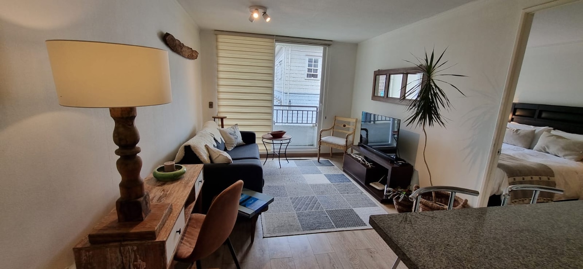 Ny leilighet, med kapasitet for fire eller fem personer. Hovedsoverom med seng for to personer, stuen har en sovesofa for to personer til, og det er også en sammenleggbar seng for en femte person. Leiligheten er helt elektrisk. Den ligger ett kvartal fra sentrum av Puerto Varas, fem fra kasinoet, seks fra innsjøen og ved siden av et supermarked. Bygningen har også tilgang til vaskeri, treningsstudio og grillområde. Det er ingen parkering.
