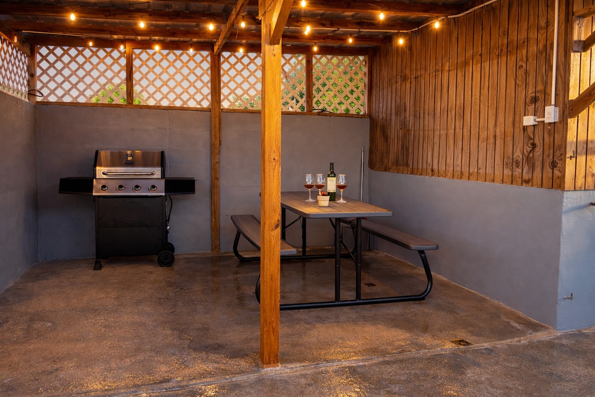 Huset har to soverom. Det første med en queensize-seng og en enkeltseng. Det andre rommet har en køyeseng med to queensize-senger og en annen queensize-seng. To komplette og moderne bad, ett inne med jetstråler og ett i bassengområdet, pluss en ekstra dusj. I stuen finner du Roku TV, Netflix og Amazon Prime. Vi har brettspill og pelletsgrill. Kjøkkenet er utstyrt med mikrobølgeovn, brødrister, kaffemaskin, kjøleskap, komfyr og alle redskaper. Den har en sistern, kraftverk og vannfilter.