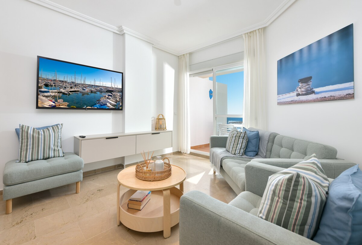 Føl deg som hjemme i leiligheten vår ved marinaen mens du nyter La Costa del Sol. Fester er ikke tillatt. Leiligheten: tre soverom, to bad, stue, fullt kjøkken, vaskerom, felles svømmebasseng og undergrunnsparkering. Den ligger praktisk til ved promenaden og: stranden (1 min), Esteponas historiske sentrum (10 min), chiringuitos, bil-/sykkelutleie, sjøaktiviteter osv. I området: tre supermarkeder, to apoteker, restauranter, butikker, kaféer, sjøaktiviteter og utleie.