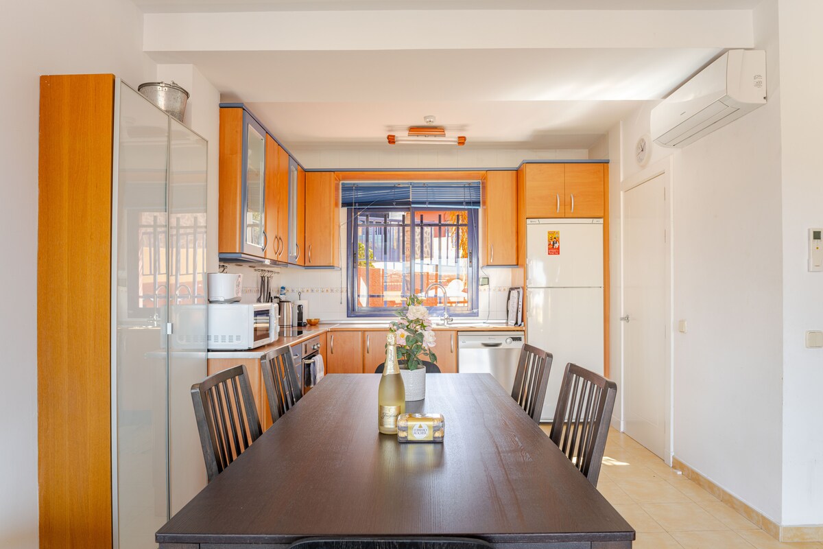 Nyt familieferien din på Casa Feliz. Se den beste solnedgangen på øya mens du spiser middag hjemme. – Stort, vakkert basseng, barnebasseng og boblebad i nærområdet. – 600 mbit trådløst nettverk på alle rom + terrasse. – Netflix, XBOX og familiespill. - barbeque Fem minutters spasertur til stranden. Fem minutters gange til supermarked (Mercadona) og sykehus. Vakker strandpromenade fører til fyrtårnet og sanddynene. Inngjerdet nabolag med overvåkningskameraer og vakt døgnet rundt. Gratis parkering innenfor portene.