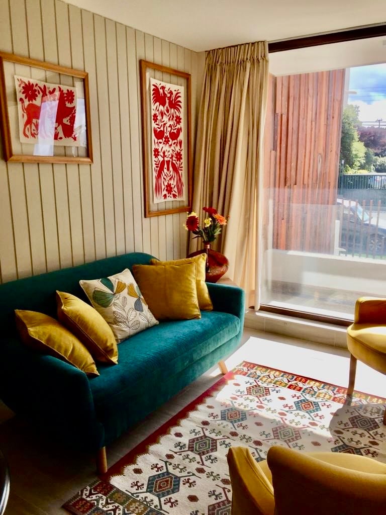 New apartment, with 4 or 5 person capacity. Master bedroom with 2 person bed, living has a sofa bed for 2 more people and also there’s a folding bed for a 5th person. The apartment is full electric. It is located one block from downtown Puerto Varas, 5 from the casino, 6 from the lake and next to a supermarket. Also, the building has access to laundry, gym and barbecue sector. There is no parking.