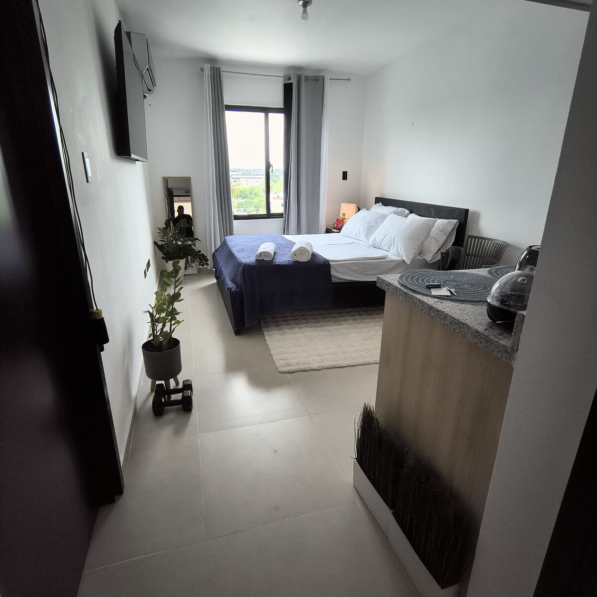 Descubre tu refugio ideal en el centro de Santiago 🌇. Este moderno y elegante apartamento ofrece habitaciones confortables con ropa de cama premium, baño con amenidades de hotel, sala con Smart TV y WiFi de alta velocidad 📶. Relájate en el balcón privado o disfruta la cercanía a restaurantes, tiendas y atracciones. Perfecto para viajes de placer o negocios, diseñado para que vivas una experiencia única, cómoda y memorable en la ciudad. *Es necesaria la foto del ID para el acceso*