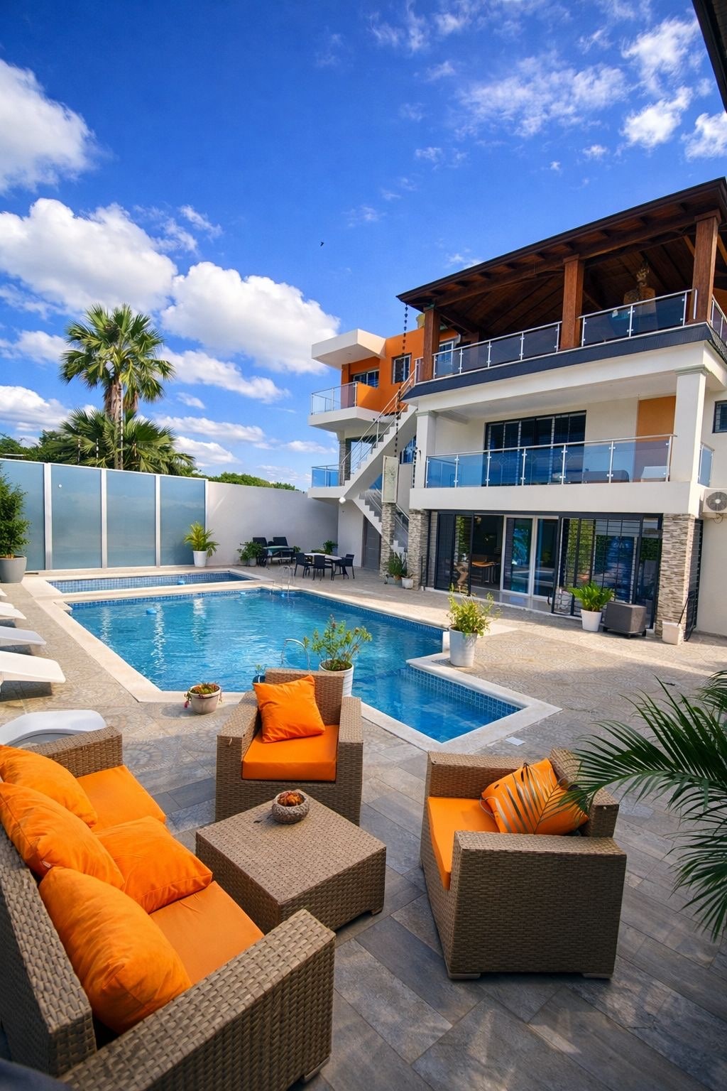 Vakkert, komfortabelt og romslig hus med tre komfortable soverom, basseng, Jacuzzi, biljardbord, domino, hvor du vil ha det gøy hele tiden.