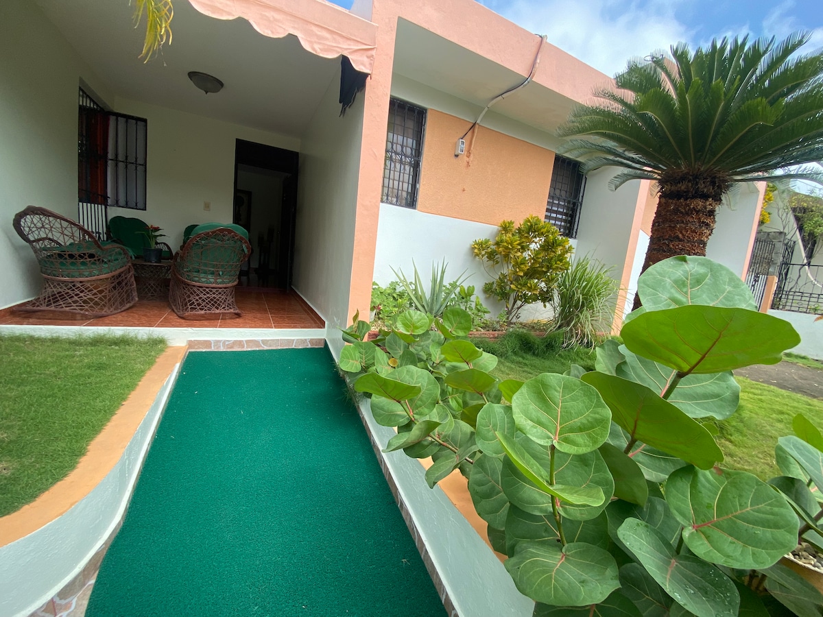 Beliggende i det fredelige og sikre nabolaget Villa María, boligområde bare minutter fra Santiagos pulserende sentrum og flyplass. Dette romslige huset med tre soverom tilbyr komfort som er ideelt for familier og vennegjenger. Tre soverom med bad Hvert soverom er utstyrt med klimaanlegg. Uteområde Valgfrie matlagings- og rengjøringstjenester (kontakt verten for mer informasjon). Passer for utforskning • Sosúa Beach – 1 time med bil • Jarabacoa (fjell, elver – 45 minutter). • Puerto Plata – én time