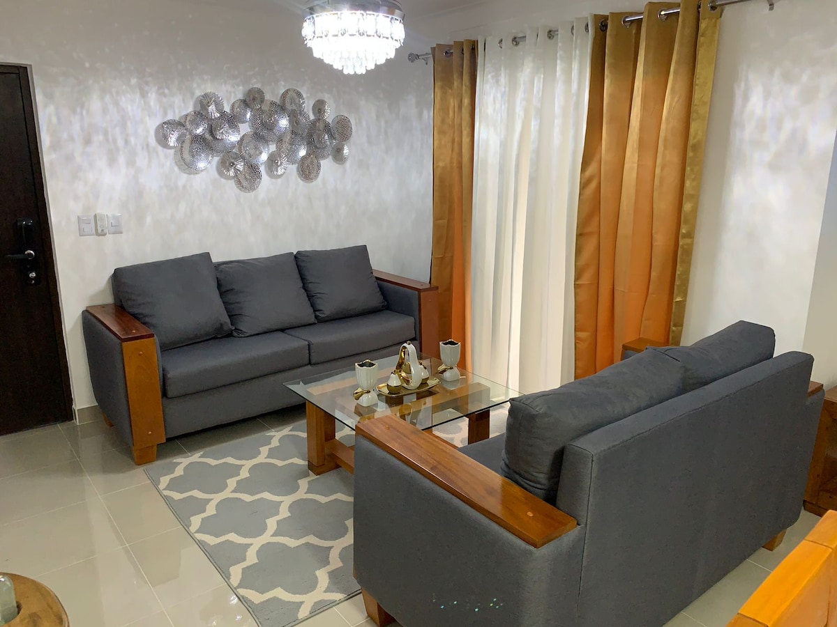 Ny og moderne leilighet, komfortabel og godt opplyst plass. Velutstyrt kjøkken og et rent og romslig bad, privat og sikker parkering med sikkerhet 24/7. Beliggende 10 minutter fra flyplassen, sentrum osv. Perfekt for å nyte en komfortabel og rolig plass med hele familien. Utstyrt med 3 soverom med wifi-TV og aircondition. Vi har en privat arrangementsal, svømmebasseng, villa, treningsstudio, grillplass, lekeplass for barn, basketballbane, wifi.
