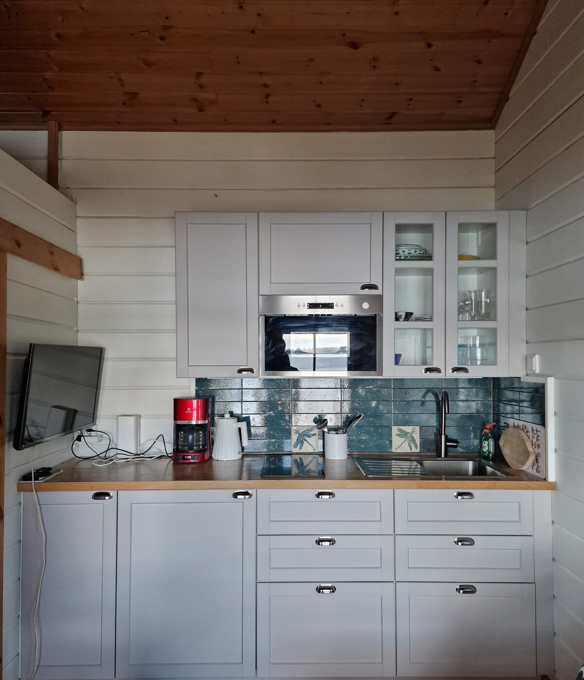 Hytta ligger 20 km fra sentrum i Helsingfors. Bussholdeplassen til Helsingfors ligger 500 meter fra hytta. Den ligger ved siden av sjøen og har en egen brygge hvor du kan fiske eller ta en dukkert i sjøen. Det er en sovesofa, en peis og et lite kjøkken, smart-TV og trådløst nettverk, en vedfyrt badstue og en hems med en dobbeltseng. Brødrister, kaffetrakter, Nespresso-maskin, robåt og mikrobølgeovn er også tilgjengelig. Hytta er på 27 kvm, så den passer best for én eller to personer.