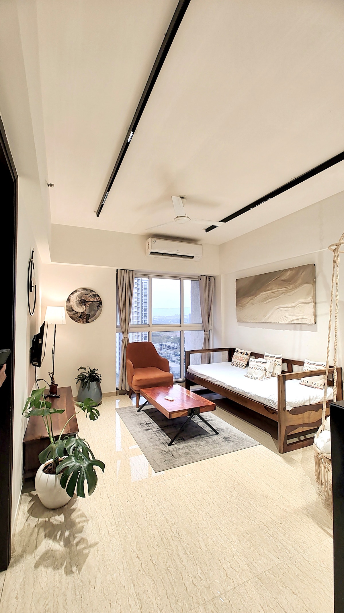 Velkommen til den avslappende 1-BHK-leiligheten vår, som ligger i andre etasje, hvor komfort møter fantastisk utsikt over åser og motorveier. Nyt et velutstyrt kjøkken, en koselig seng og høyhastighets internett for et komfortabelt opphold. Det ligger i et fredelig nabolag, og er et ideelt sted å slappe av. Utforsk attraksjoner i nærheten eller nyt fasiliteter som svømmebasseng, treningssenter og utsikt over innsjøen, perfekt for avslapning og moro.