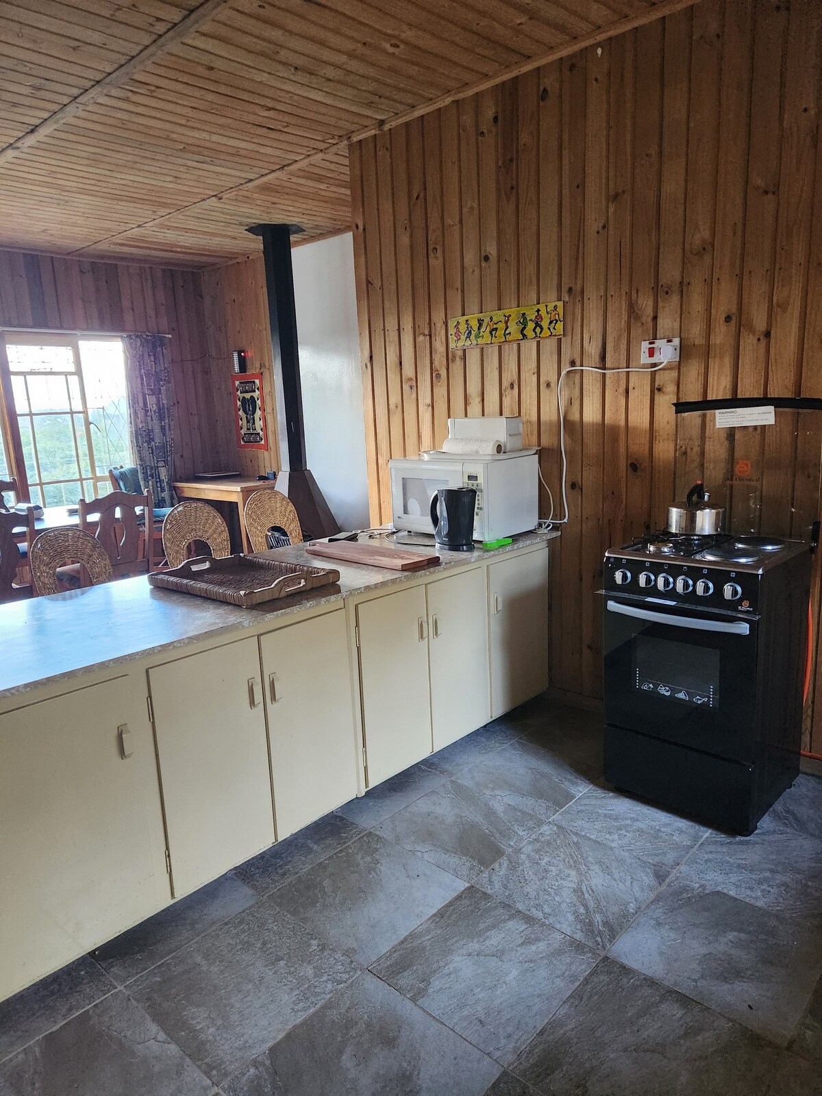 Flykt og slapp av til dette rolige hjemmet som ligger i de fantastiske bakkene i Nyanga. Dette koselige feriehuset har en perfekt beliggenhet for å utforske Zimbabwes østlige høyland, og tilbyr fantastisk fjellutsikt, frisk frisk luft og den ultimate fred og ro. Huset er utstyrt med en romslig stue med en koselig peis for å holde deg varm på kjølige kvelder. Den har et fullt utstyrt kjøkken for å tilberede måltidene dine, en uteterrasse med panoramautsikt som er perfekt for morgenkaffe eller solnedgang.