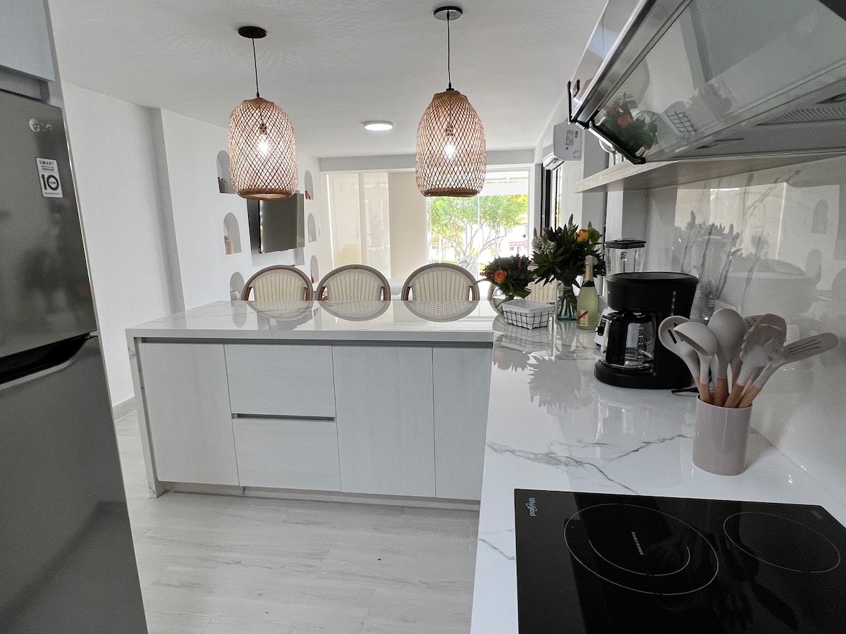 Modern ground-floor stay | Private terrace with grill and direct access to the pool | 3 bedrooms and a spacious living room to share | Central A/C in all areas | Spotless bathrooms | Fully equipped kitchen | Bed linen, towels, and toiletries included | Smart TV and high-speed fiber optic WiFi | Power generator and water well | Safe, exclusive, and quiet area | 2 private parking spots | Personalized 24/7 assistance | Near beaches and shops | Minimalist design and premium amenities. +58 Suites