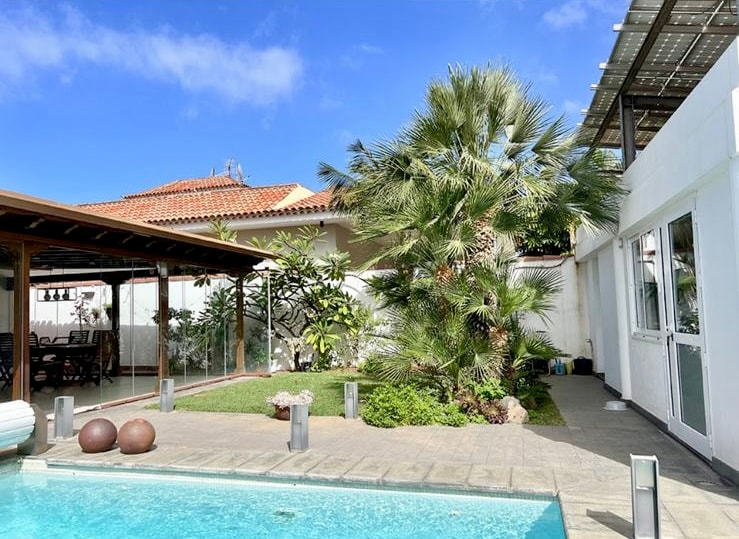 Tropisk, fredelig hage i nærheten av havet, fibertrådløst internett: her er det mulig å nyte stillheten, utsikten mot havet og en hage full av stil og fortrylling. Sannsynligvis er det mest koselige hjørnet det elegante svømmebassenget og utesalongen, som inviterer til å nyte de solfylte vinterettermiddagene og solnedgangene resten av året. Fantastisk bassengområde. Gården ligger veldig nærme den berømte Playa del Socorro: avslappet atmosfære på grunn av de vakre solnedgangene og surfekonkurransene.