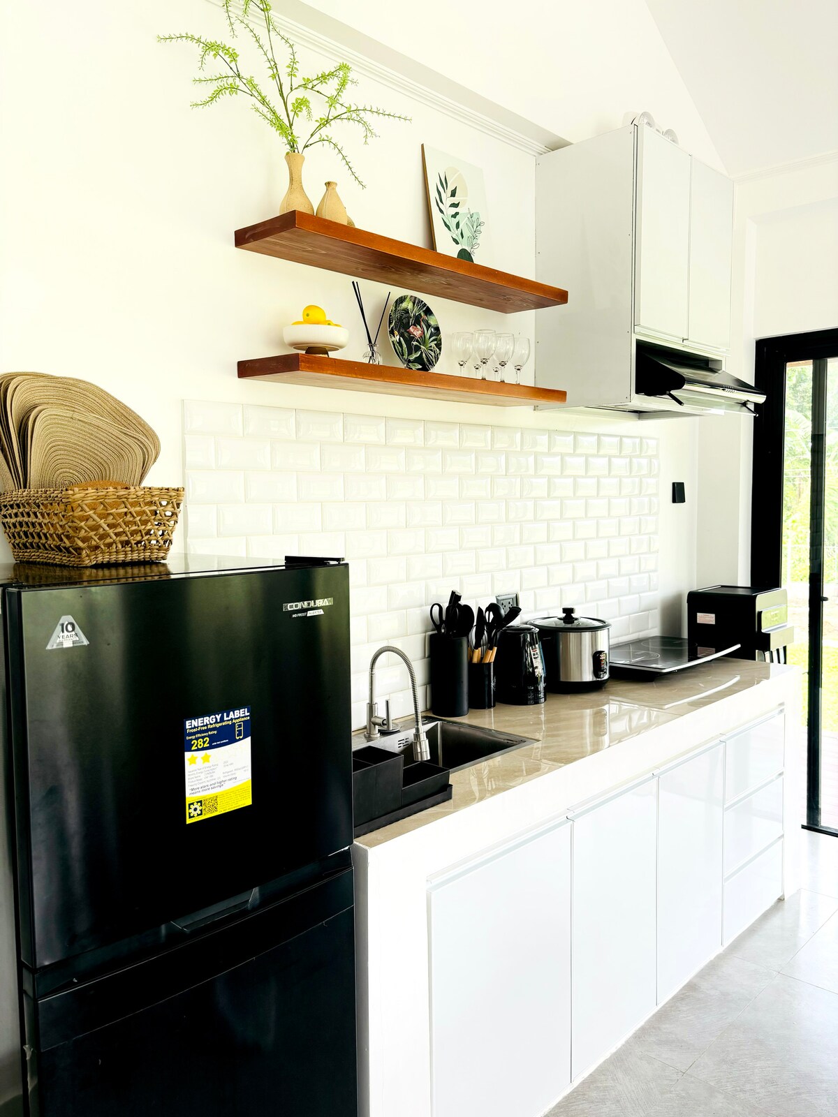Welcome to Yugen Suites, your tranquil retreat by the sea, where minimalist Japanese design meets the natural beauty of Mt. Pico De Loro. Located at the 2nd floor of Carola B Building inside beautiful Hamilo Coast, this newly remodeled apartment is a 47sqm studio bedroom with ensuite kitchen and bath designed with a clean, natural aesthetic. — CAPACITY — Pico rules limit the room’s capacity to 6 pax, which includes children 1 yr old and above. No exceptions.