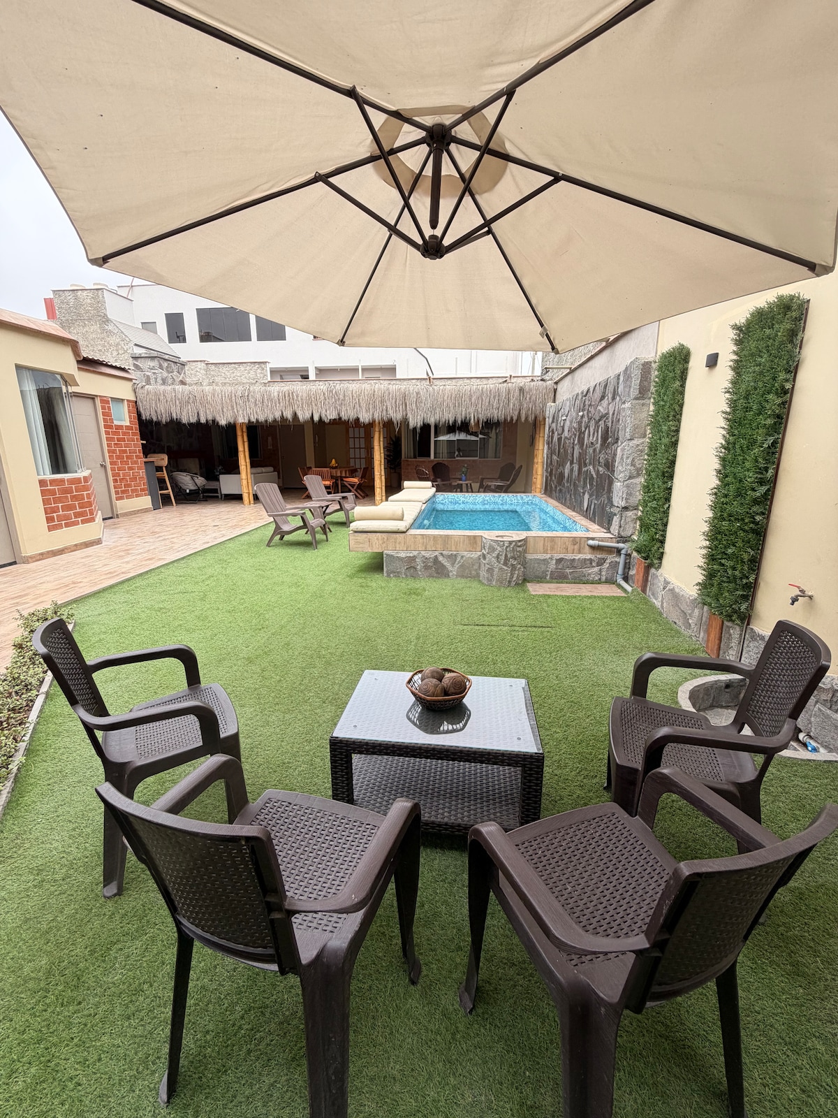 Fully equipped beach house with pool and grill, located atop The Chanque Hill. Facing the sea and within a 24-hour secure condo, the house boasts one of the best views of the Pacific Ocean and is just a few kilometers from Lima, the capital. To reach Bikini Beach, you only need to descend the stairs that lead you directly to the sand. The accommodation is close to the local market and various shops and restaurants. We also provide wireless wifi and Netflix.