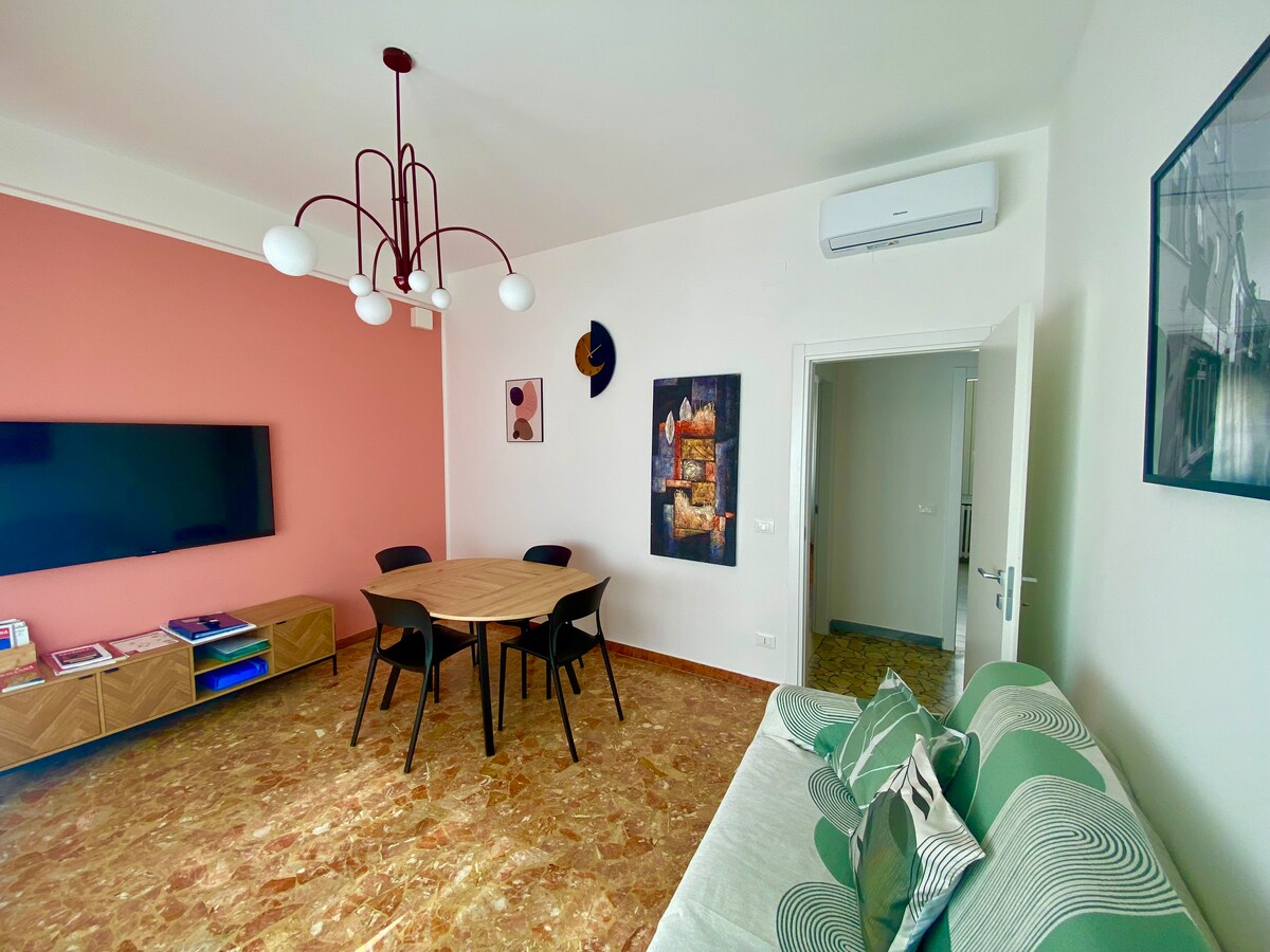 Privat Deluxe-suite, ideell for bedrifter, familier og små grupper, i Riminis historiske sentrum, noen få skritt fra Palacongressi, i nærheten av stasjonen (1 stopp til Fiera) og havet. To dobbeltrom, hvert med smart-TV og skrivebord, barhjørne i inngangspartiet, stort privat bad, vaskerom og gratis ultrarask Wi-Fi. Vugge og barnestol på forespørsel. Parkering og restauranter i nærheten! Tilgang til kjøkken og stue i «Coliving»-området