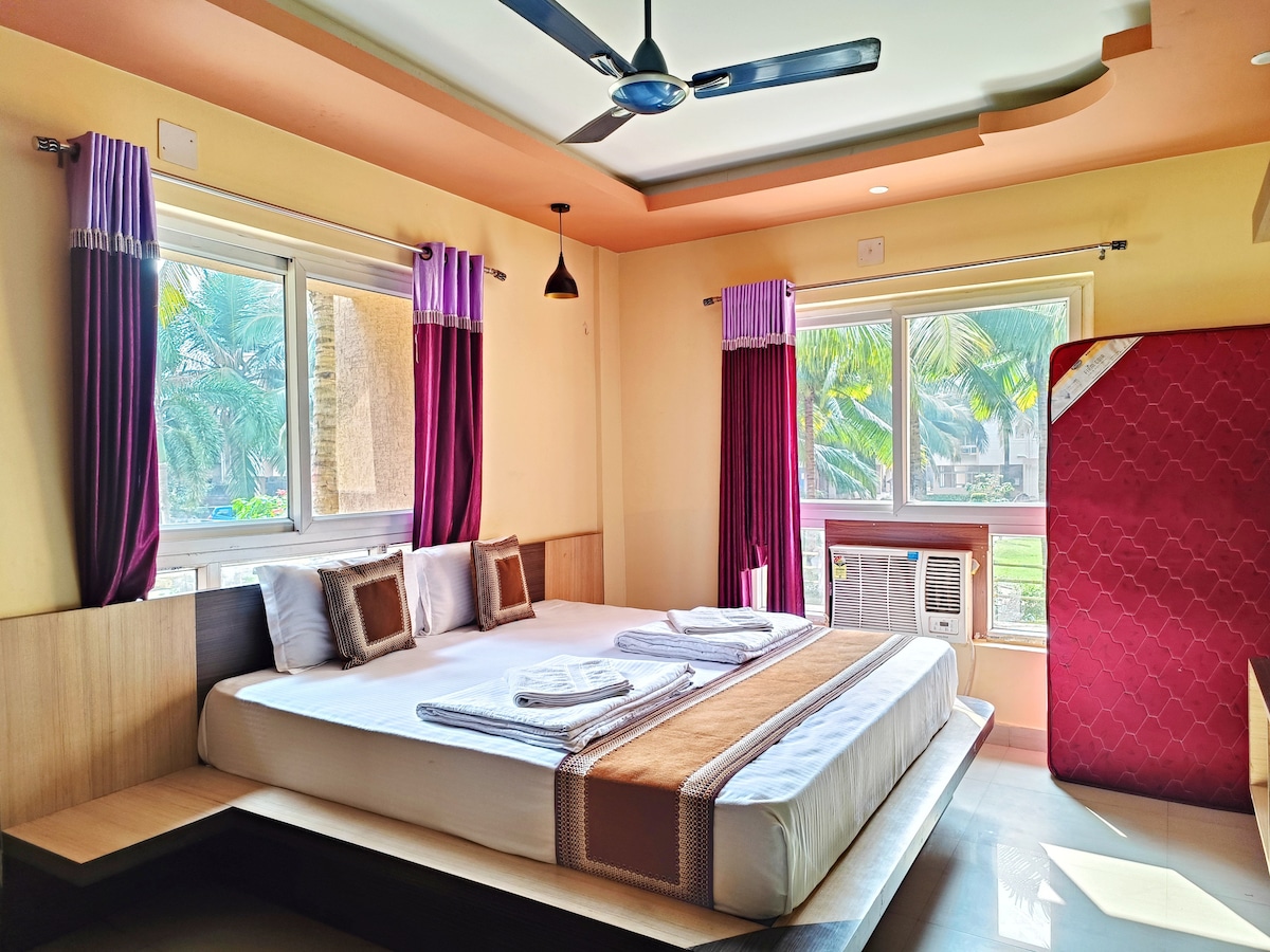Dette er et veldig romslig rom med balkong. Velutstyrt interiør med kjøkkenutstyr. Cloud-kjøkken er også tilgjengelig, mat kan leveres ved døren din. Gjestehuset ligger nærmere stranden og tempelet. Rikelig med parkeringsplass tilgjengelig. 17 andre rom er også tilgjengelige. Mulighet for å kjøpe Tatkal-billetter til drosje og tog er også tilgjengelig.