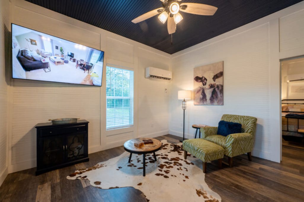 "Tranquility Three Rivers Ranch" is a quiet 800 sf cabin for2 for those getaway vacays. Enjoy country living on 55 grazing and wooded acres. It comes with a utensil stocked kitchen for cooking and an open floor plan. Large flat screen Tv's in both living room and bedroom. Stream with reliable starlink. Feel free to bring your tackle and fish 3 stocked ponds. Hike anywhere on the property or relax and watch wildlife or grazing horses. Bring carrots!