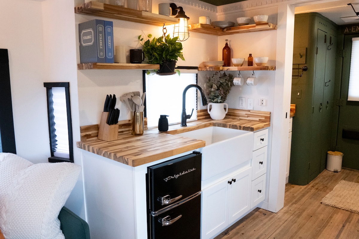 Denne Caboose-turnerte minihytta ligger midt på en 900 hektar privat gård i Fraziers Bottom, og tilbyr en fantastisk ferie for gjester. Vi har totalrenovert både innvendig og utvendig med en massiv terrasse, inkludert boblebad, bålplass og utemøbler med en utsikt å dø for! Et koselig soveområde med en queensize-seng og en avslappende stue med en sovesofa overfor et unikt spiseområde med buet vindu! Vi har et privat bad med dusj. Dette stedet er perfekt for en beroligende ferie!