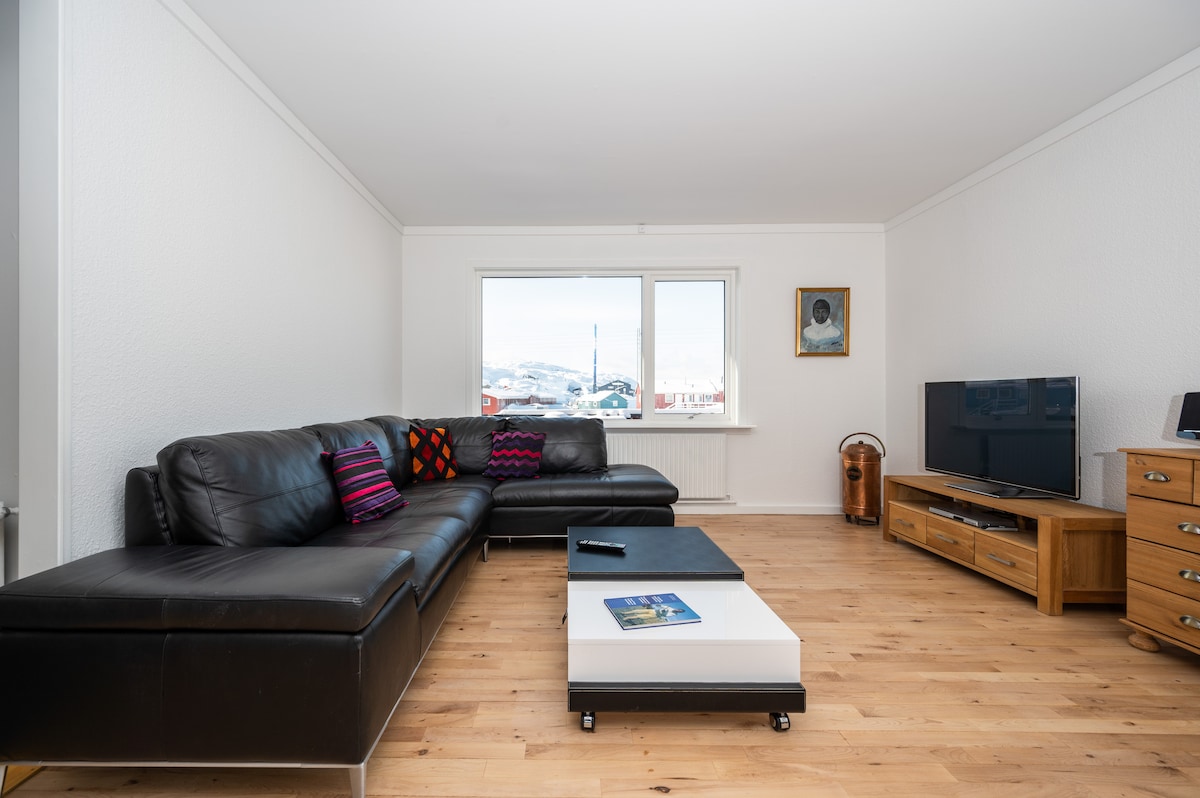 Nydelig leilighet med to rom. Sentralt plassert, i nærheten av lokalbefolkningen og den ekte grønlandske kulturen. Du vil bo side om side med sledehunder, med utsikt over isfjordens speilaktige havoverflater med de vakreste hvite isfjellene, samt helt opp til de snødekte fjellene. – Fem minutters gange til sentrum. – 10 minutter til isfjordens sentrum. – 12 minutter til UNESCOs verdensarvsted. I leiligheten: informasjonsmappe Klær/håndklær/sengetøy. Kjøkkenutstyr. TV/gratis trådløst nettverk. Vaskemaskin/tørketrommel.