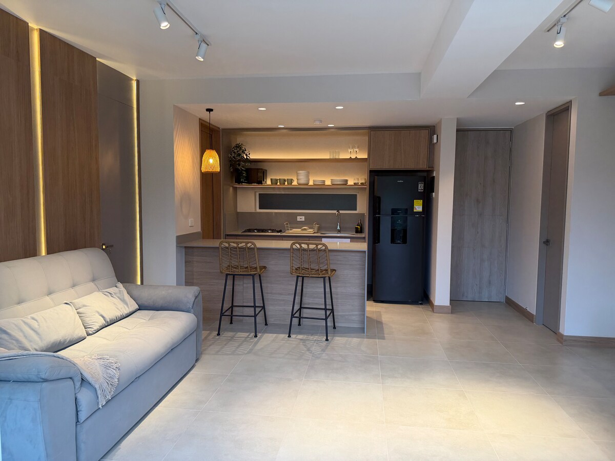 Leilighet med aircondition, tre soverom, en mesanin, raskt internett, våtrom. 40 minutter fra Medellin. Utstyrt med sengetøy, kjøkkenutstyr og et kontorområde (virtuelt arbeid), konsentrer deg og bli inspirert med en spektakulær utsikt over fjellet og med skjønnheten i San Jerónimo-turismen. Svømmebasseng, badstue, boblebad og rolig atmosfære for en uforglemmelig turistopplevelse. En overdekket parkeringsplass. Fleksibel ankomst og avreise. 24-timers portvakt.