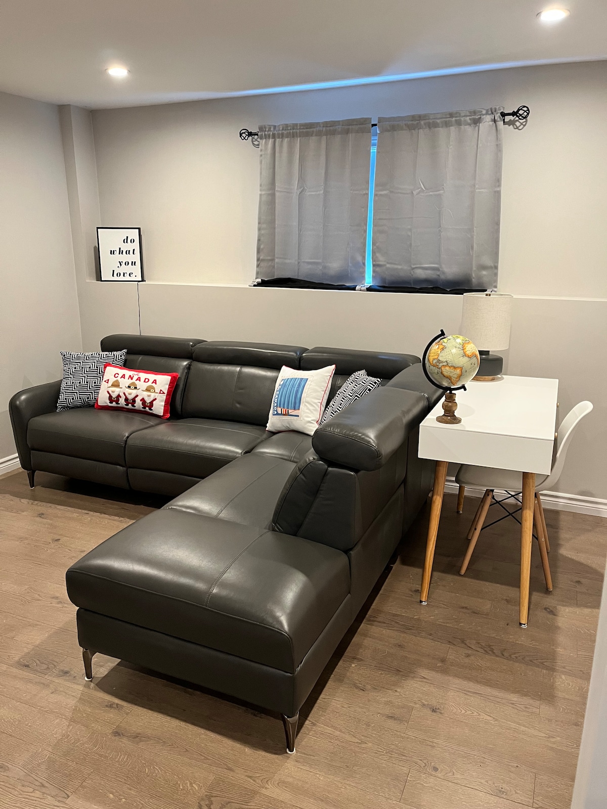 Tilbring en natt, en uke eller en måned i denne selvstendige leiligheten i sentrum av Fredericton. Denne komfortable oasen er nybygget og smakfullt innredet, og har et stort oppholdsrom med seksjonssofa, 65" TV, elektrisk peis, bar med vask, Keurig kaffetrakter, mikrobølgeovn, brødrister, minikjøleskap, barbord og krakker, og et biljardbord. Soverommet har en luksuriøs kingsize-seng, mye oppbevaringsplass og en 40 tommers TV. Nydelig bad med badekar/dusj-kombinasjon, stor vask og toalett.