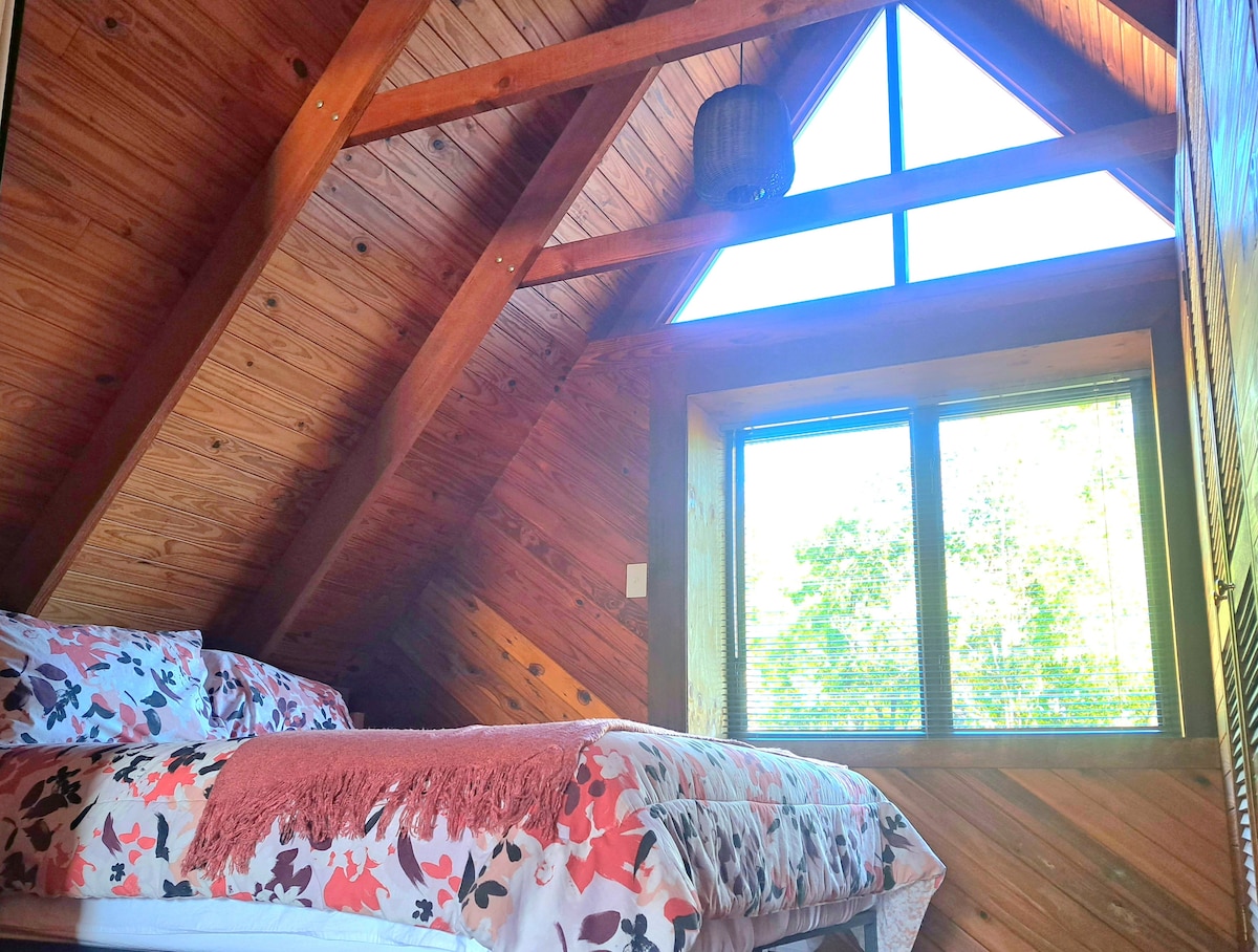 Unn deg en hytte med åpen planløsning gjemt i en regnskog med bare en liten spasertur fra Gallery Walk. Fantastisk atmosfære med høyt tak, takvinduer og en veldig høy glassvegg med utsikt direkte inn i palmer, bregner og trebregner. Queensize-seng, boblebad, peis, kjøkkenkrok, aircondition/oppvarming. Sengetøy inkludert.