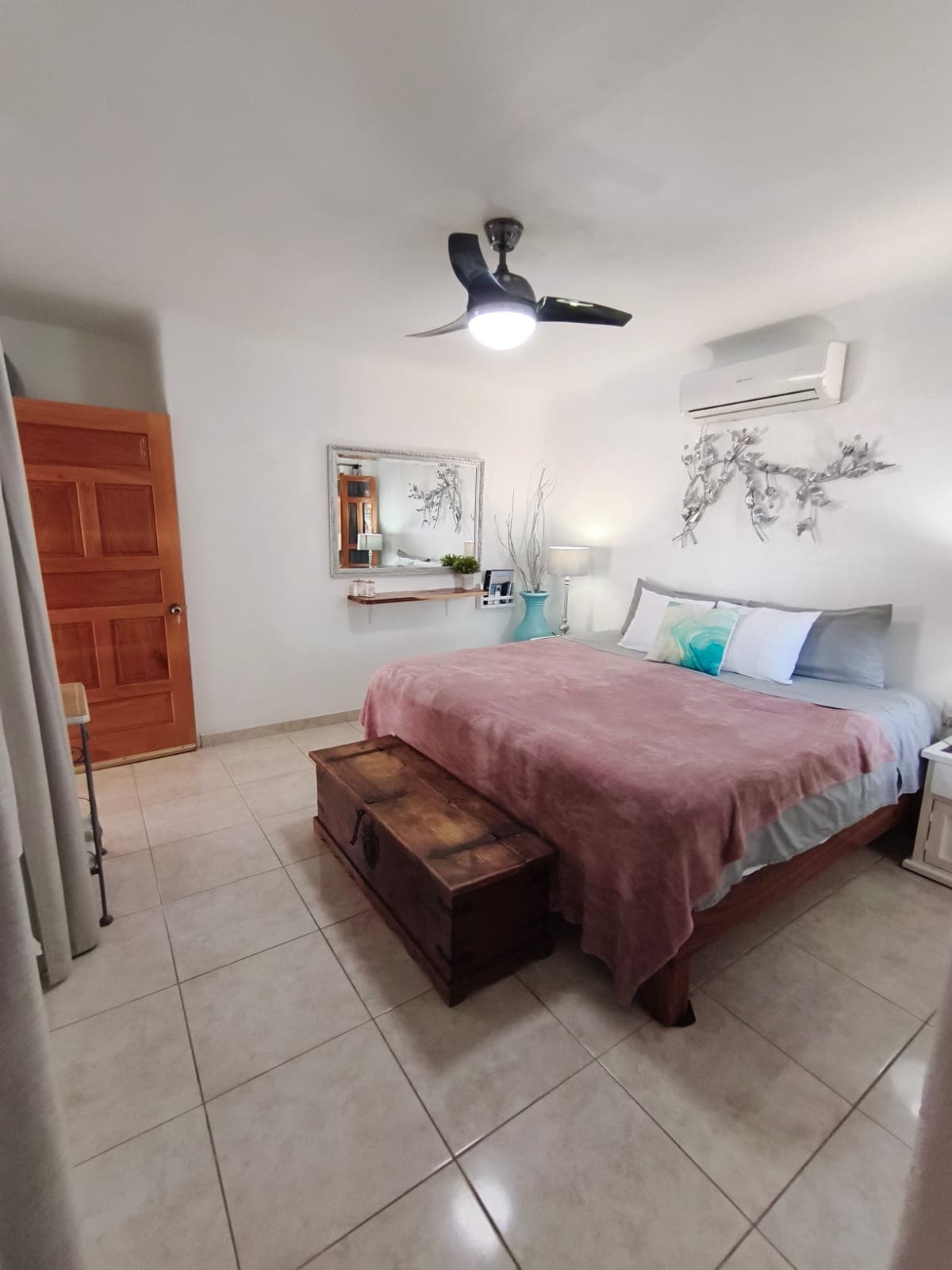 Velkommen til Casa Aquamarina, et intimt og lysfylt rom i tredje etasje i La Joya de Chamela. Med en kyststil, havtonet innredning og tilgang til et tak med utsikt over palmer og havet, er det ideelt for å slappe av, koble til og oppleve Costa Alegre i ditt eget tempo.