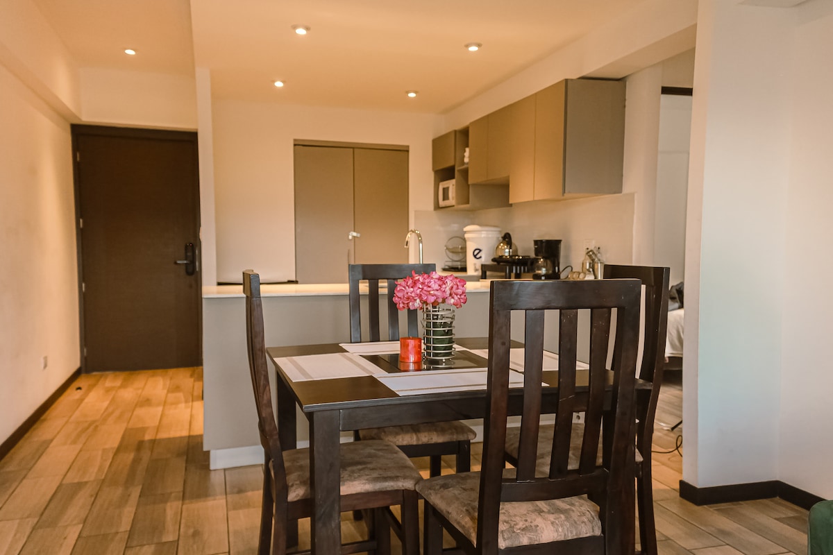 Nyt et moderne opphold i hjertet av Xela. I 11. etasje i Torre Altos de Occidente tilbyr Suite Santa María direkte panoramautsikt over vulkanen, raskt trådløst nettverk, kontorfellesskap, treningsstudio og barnerom. Foran Interplaza og i nærheten av det meksikanske konsulatet. Ideell for å slappe av, jobbe eller utforske. Med innsjekking uten vert, en strategisk beliggenhet og et trygt område, er dette det beste alternativet på Airbnb i Quetzaltenango. Inkluderer privat parkering, utstyrt kjøkken og plasser designet for din komfort og trygghet.